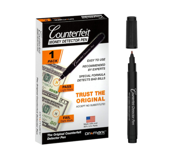Businesses have counted on the Dri Mark Counterfeit Money Detector Pen for over 25 years β you can too! Choose from a variety of pack sizes perfect for small and medium sized businesses that want an efficient option for loss prevention related to counterfeit U.S. currency. These are easy to use β just put a small mark on the bill being presented to you. If the ink remains yellow, you know this is real U.S. tender; if it turns black you immediately know not to take the bill. It is that easy and super fast.