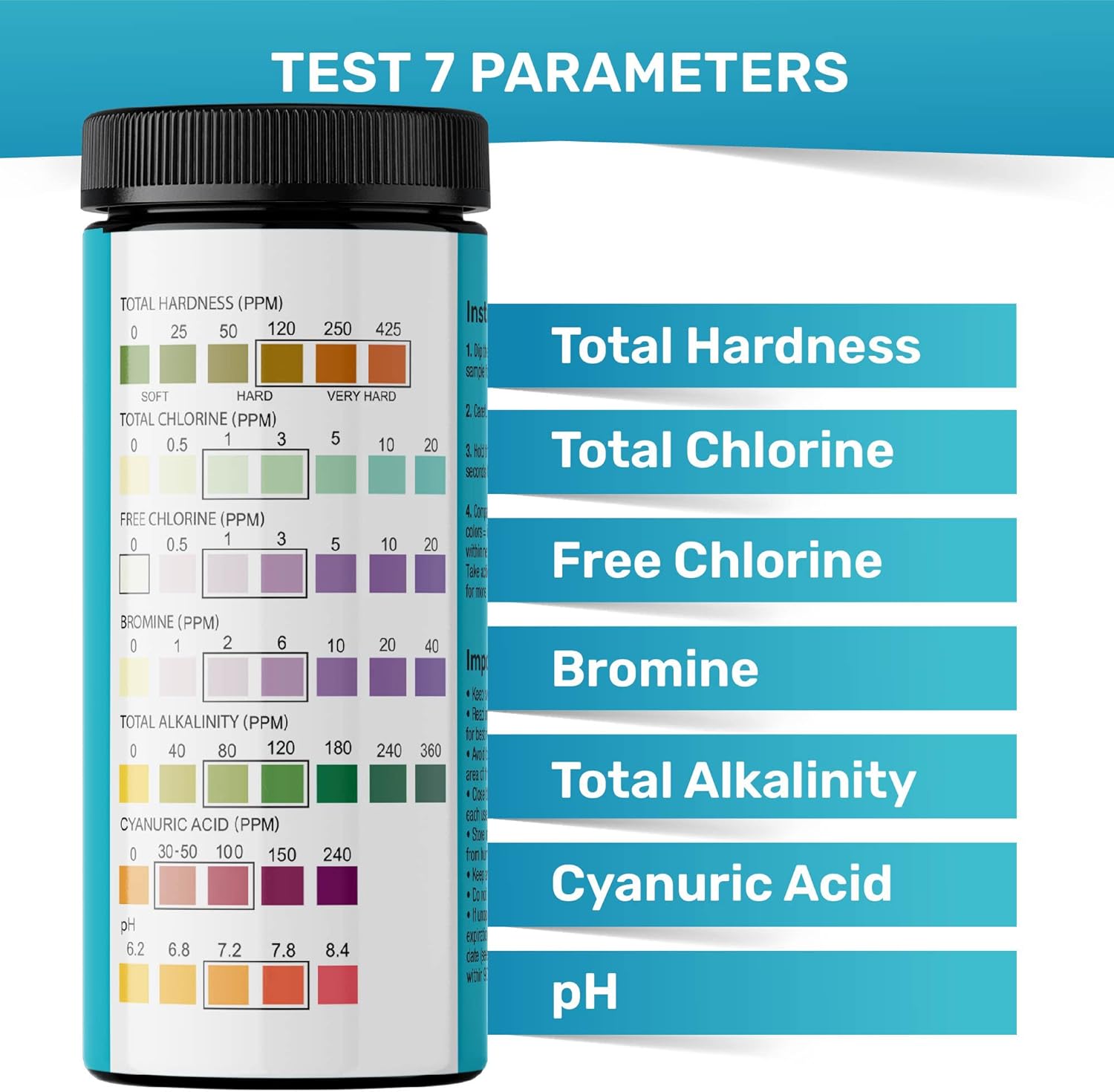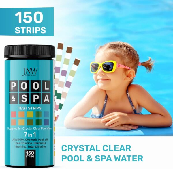 JNW 7-in-1 Pool Test Strips – 150 Quick & Accurate, Chlorine, Bromine, pH, Hardness & More – All-in-1 Swimming Pool Test Kit