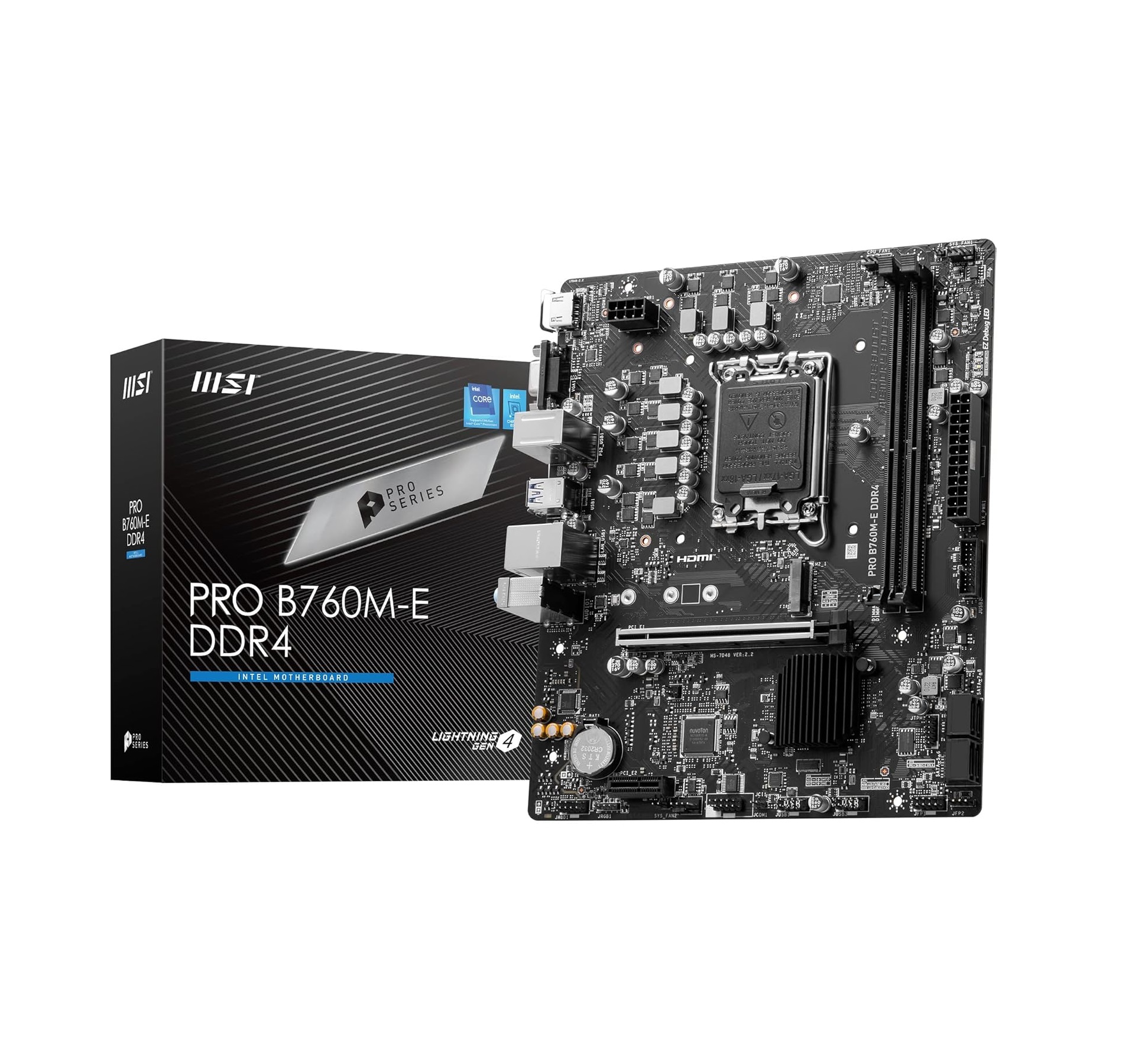 The PRO B760M-E DDR4 Motherboard supports 12th & 13th Gen Intel Core, Pentium Gold, and Celeron processors.