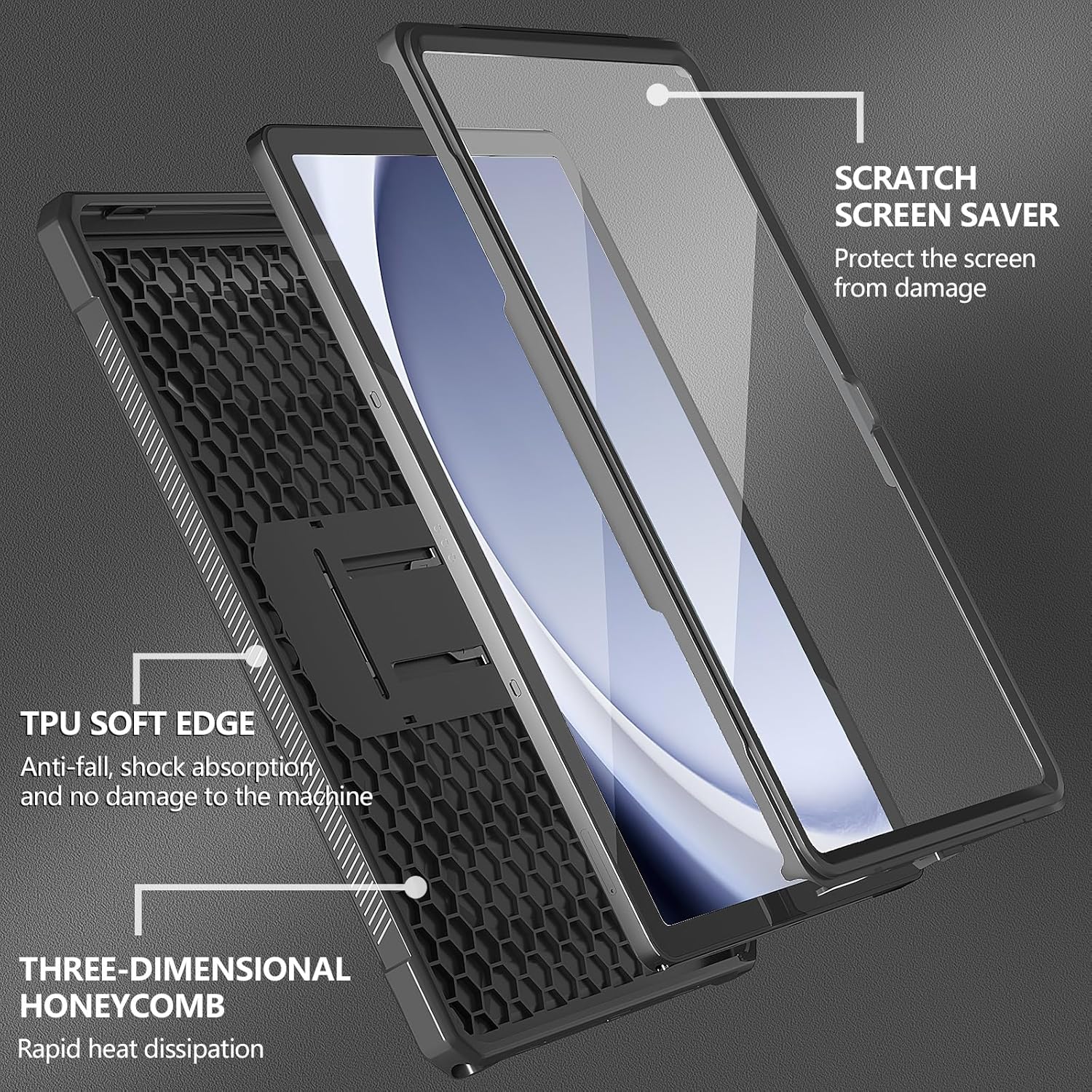 Precise cutouts, you can easy access to all buttons and ports for your Samsung Galaxy Tab A9 Plus without removing the case.like the speakers, cameras, charger port and power buttons.