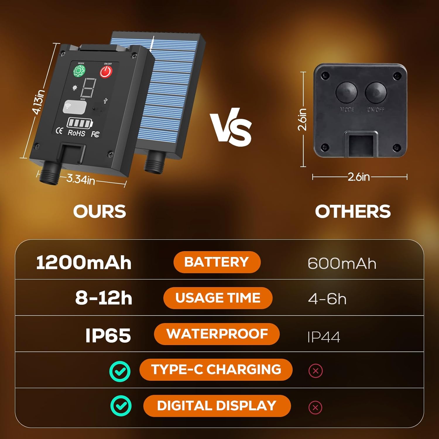 š 1200mAh Solar Power ā Lights up 15ā18 hrs on a full charge